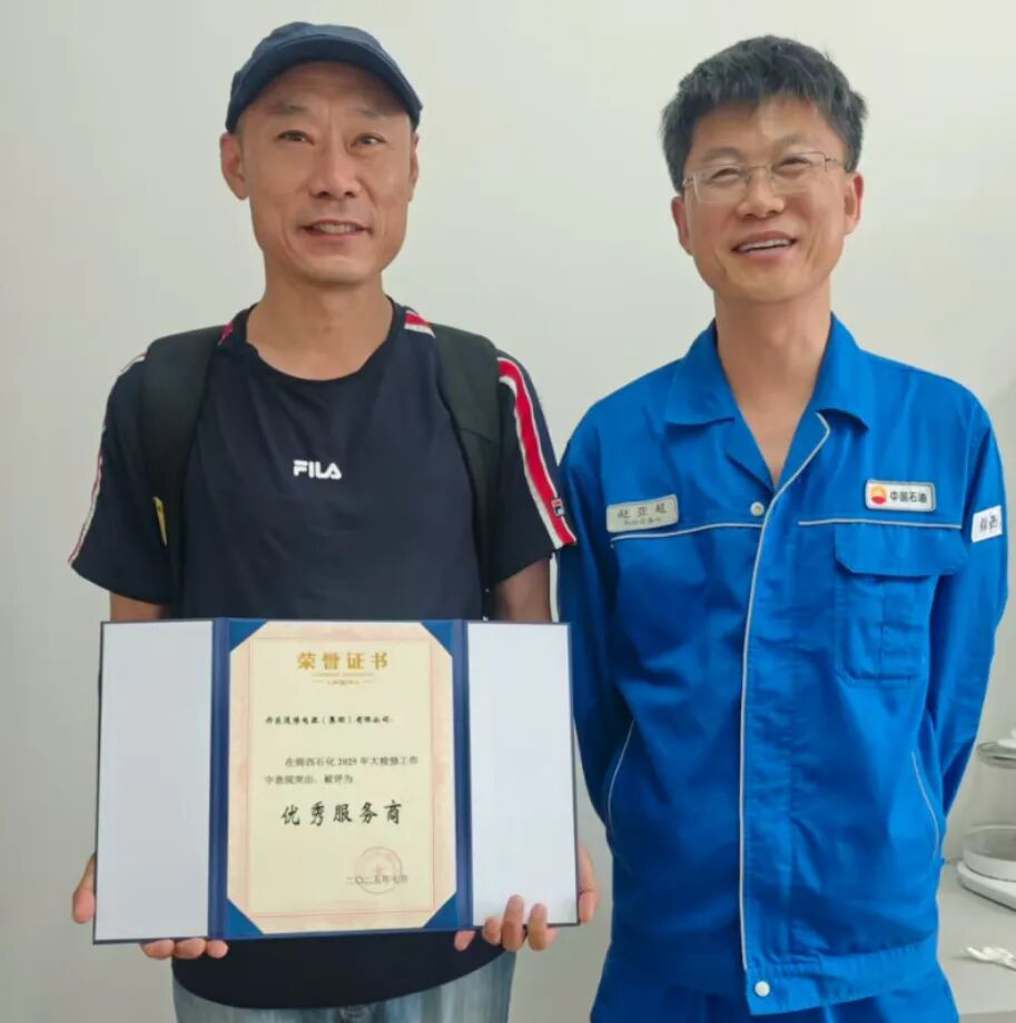 在剛剛結束的 2025 年錦西石化大檢修工作中,丹東通博集團憑借卓越的專業能力、高效的執行團隊以及對客戶需求的精準把握,圓滿完成了各項艱巨任務,贏得了錦西石化的高度贊譽,并被授予 “優秀服務供應商” 的殊榮。這一榮譽不僅是對通博集團此次檢修工作的肯定,更是對我們多年來深耕行業、堅持品質服務的有力認可。